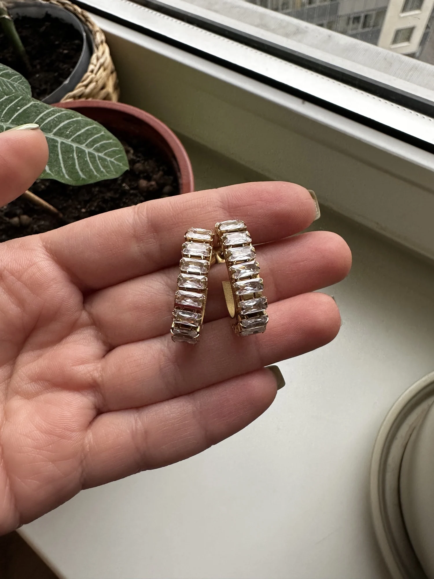 Very beautiful! The quality is good, the stone shimmer beautifully. The only flaw for me is a long stick that is inserted into the ear: the earring is dangling. So I will use with silicone clips, not metal clips that come with it. The earring is quite comfortable by weight, I don't notice it at all in my ears