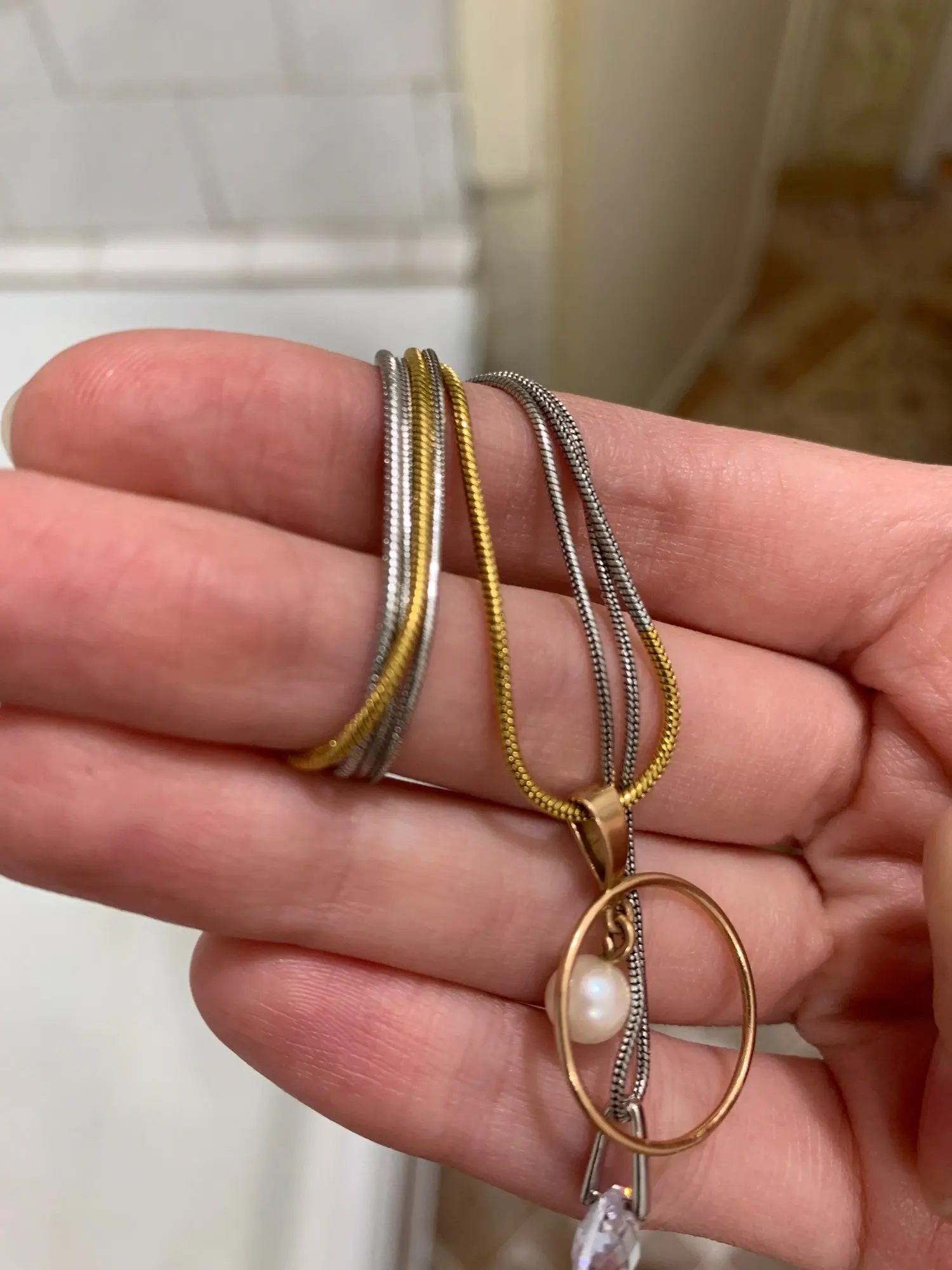 The "Golden-Silver Chain" is a unique and eye-catching piece of jewelry that seamlessly blends the elegance of gold and the sleekness of silver into one stunning accessory. The chain features alternating links of gold and silver, creating a striking and modern aesthetic. The combination of the two metals makes this chain versatile and easy to pair with any outfit, whether dressed up or down. The chain is also a great layering piece, adding depth and dimension to any jewelry stack. With its seamless blend of gold and silver, the "Golden-Silver Chain" is sure to become a beloved and timeless piece in any jewelry collection.