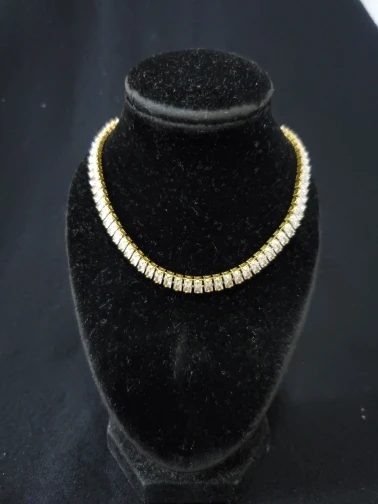 The centerpiece of the choker is a row of sparkling cubic zirconia stones that are set in a gold-filled bezel. The cubic zirconia stones catch the light and create a dazzling effect that is sure to turn heads.